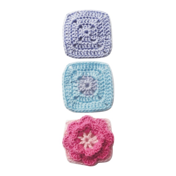 Jakken er heklet i bomullsgarn. Ermer og nederdelen av jakken er heklet med bestemorruter i 3 forskjellige mønster.