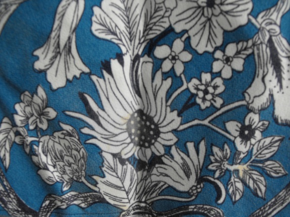 Det var diverre ein flekk på stoffet bak, som eg ikkje klarde å få heilt vekk, men som ikkje er skjemmandes (sjå bilete). Prisen er lavare på grunn av denne flekken.