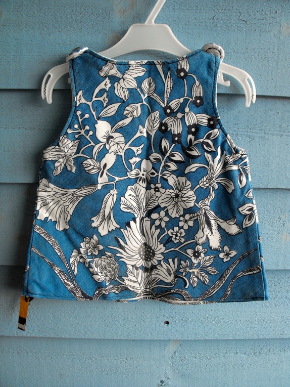 Det blomstrete stoffet har tidlegare vore ein duk og fôret inni har tidlegare vore eit putetrekk.