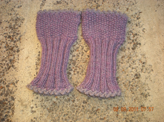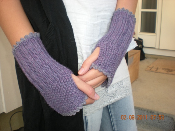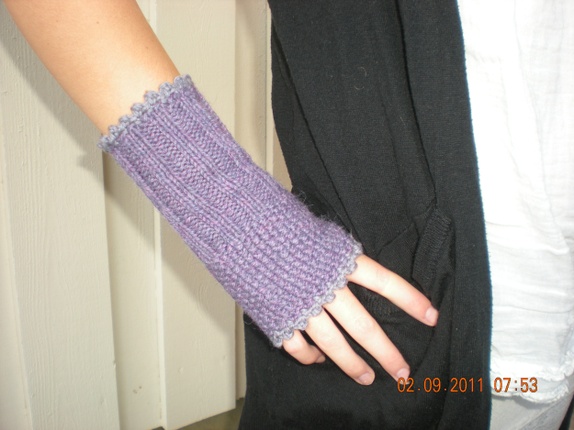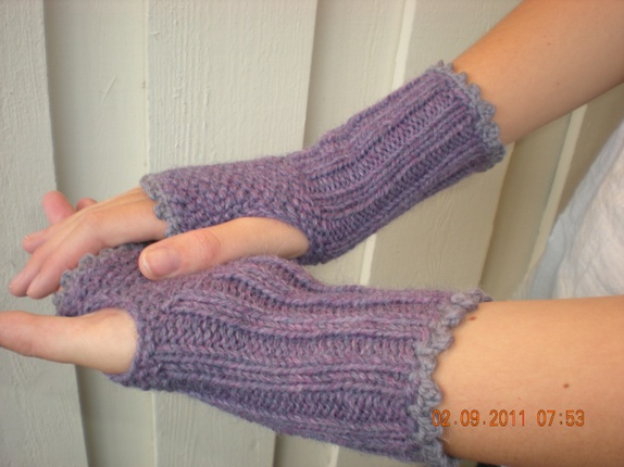 Deilige plusvarmere med heklet picotkanter. Pulsvarmerene har hull til tommel. Garnet er deilig og mykt.