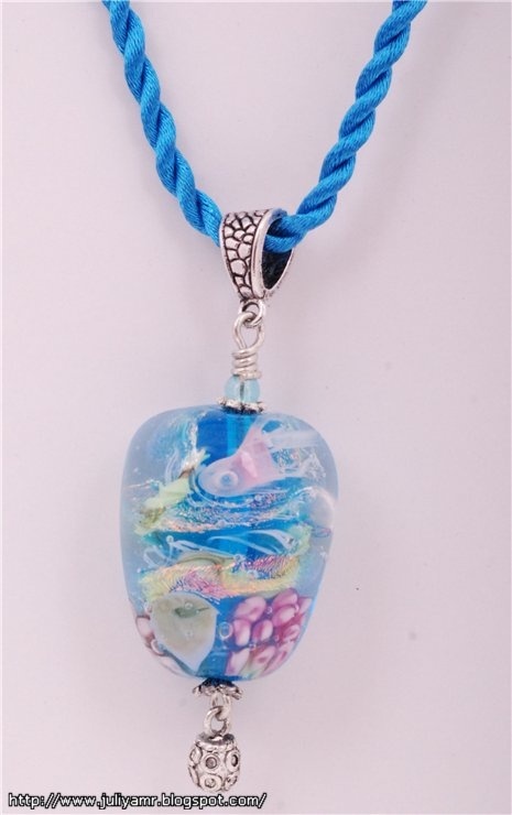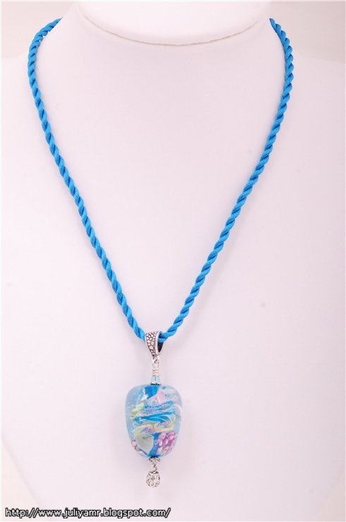 laget av krystaller, lampworkperler og metal detaljer (45 cm. silke snor + 5cm. pendant)