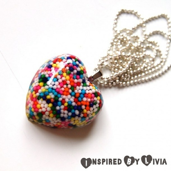 De små fargerike sukkerperlene er støpt inn i selve smykket. De er med andre ord ekte ♡