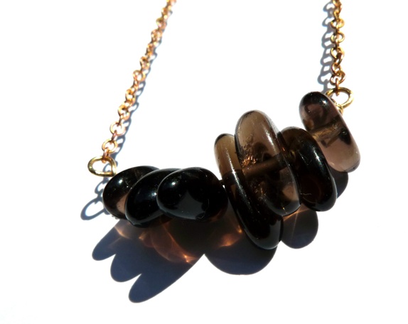 [Tags: naturlig sten, stein, steiner, stener, svart, svarte, sort, sorte, brunt, brun, brune, mørkebrun, mørkebrunt, mørkebrune, kvarts, kvartssmykke, gyllent, gyllen, gull, messing, halssmykke, geometri, geometrisk, linn paasche, modrn, moderne, smykker, kjede, kjede, langt, stort, brunt, minimalistisk, enkelt, quriks and crafts, Q&C]