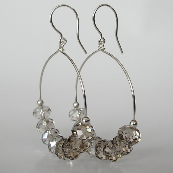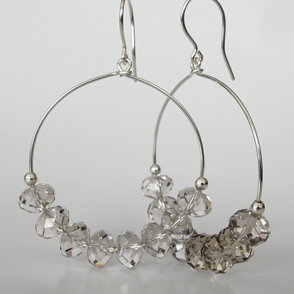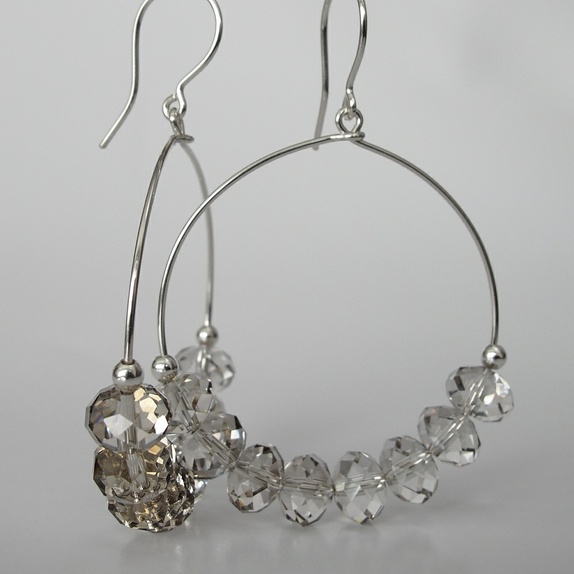 Glitrende øreringer i sølv, med krystaller i en lys, sølvskimrende farge. Mye glitter uten å virke billig! Perfekt til partybruk, men de kan funke på jobben også :-)
