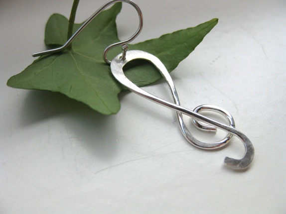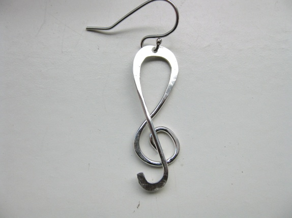 Håndlaget g-nøkkel i sølv.Lengde m. ørekrok er 4,5cm, største bredde er 11mm.