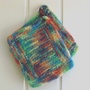 Strikket lue i flotte farger; rødmelert, rosa og lys rosa.