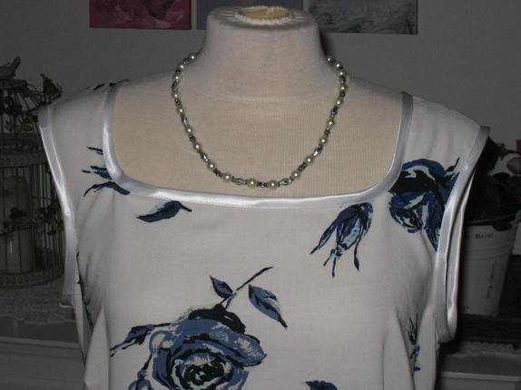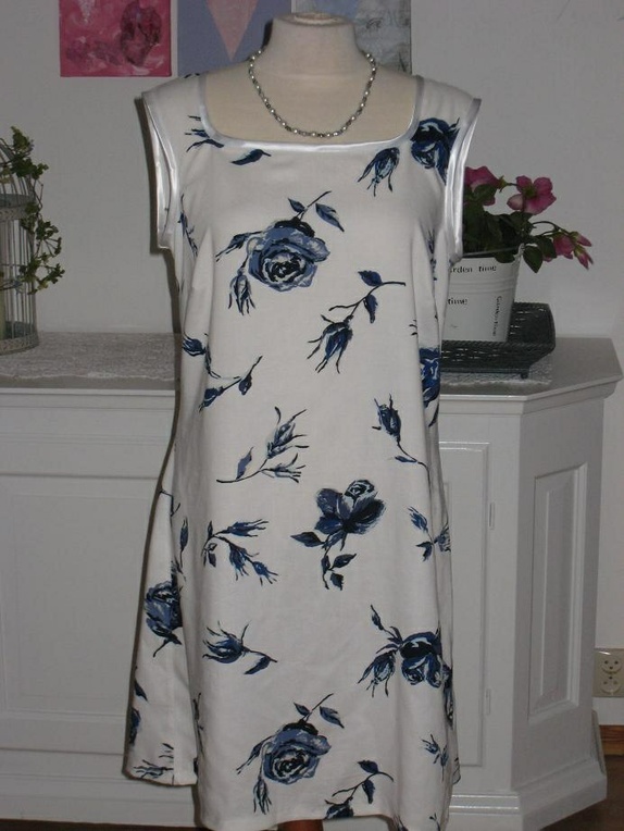 Lett og behagelig kjole /tunika til sommeren...Sydd i mykt polyester stoff med silkebånd rundt hals og ermer.Glidelås i ryggen.
