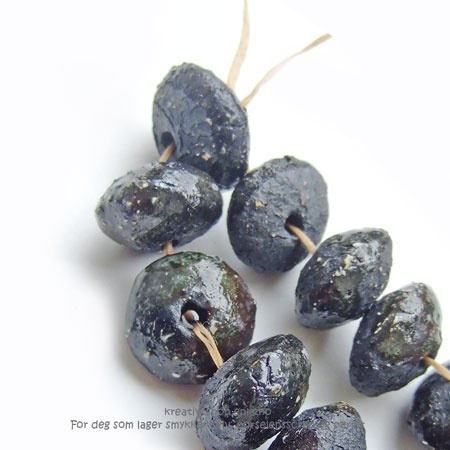 Tøffe perler med ørlite snev av teal, men sortbrune i uttrykket.