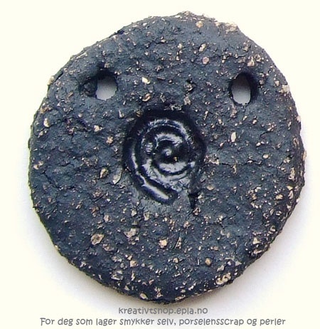 Et håndlaget anheng ca 45mm i African stone leire. Blir kjempekult i et rustikk smykke, til pynt på en veske eller alene i en snor.Veldig solid keramikk, høybrent.