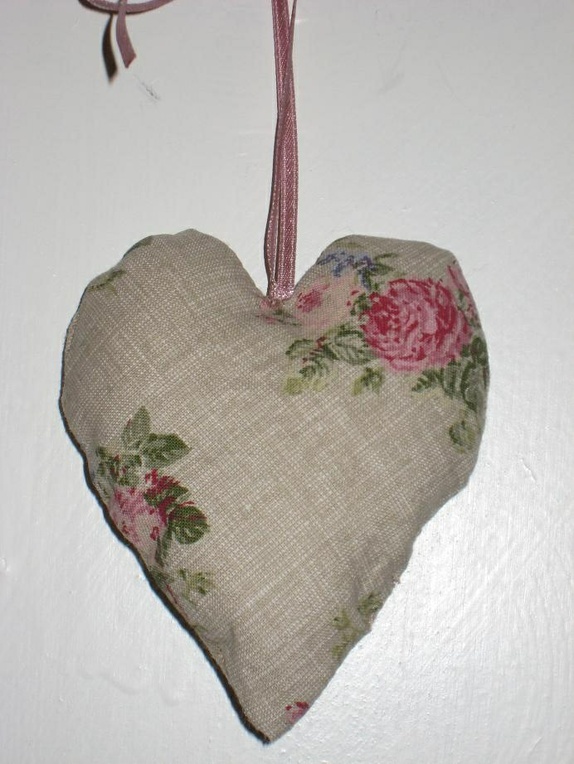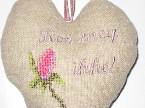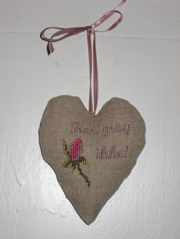Heng et nydelig hjerte, med brodert inn " Rør meg ikke" på barnevognen.Sydd i lin/bomull. ca 10 cm bredt.