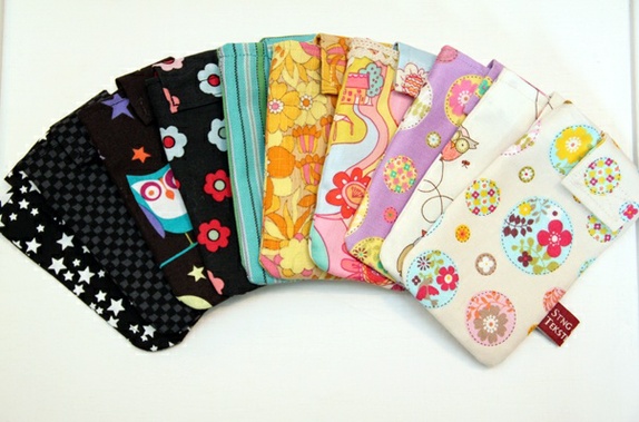 Etuiet er sydd i et stilig gammelt bomullsstoff - antagelig fra 70-tallet. Stoffet har levd et tidligere liv som forheng.