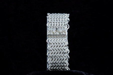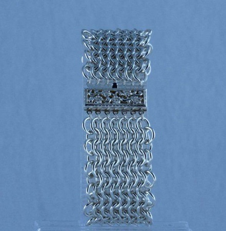 Dette er et Brynjearmbånd fra Vikingtiden, er i 925.S.Smykket er 2,5 cm bredt og 17 cm langt. Kan forlenges og minskes etter ønske. Send meg en melding for videre informasjon.