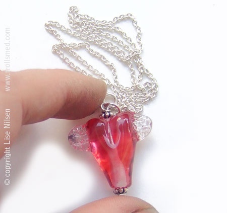 Klar til å fly, rosa vingehjerte, lampwork