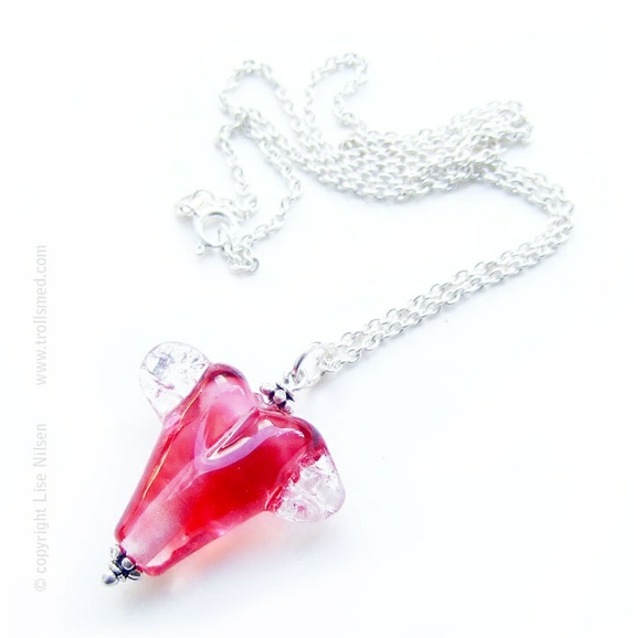 Søtt hjerte håndlaget glass i kraftig sølvkjede.