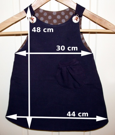 Størrelsen er angitt til 1-2år. For å sikre at kjolen passer, se eget bilde med mål.