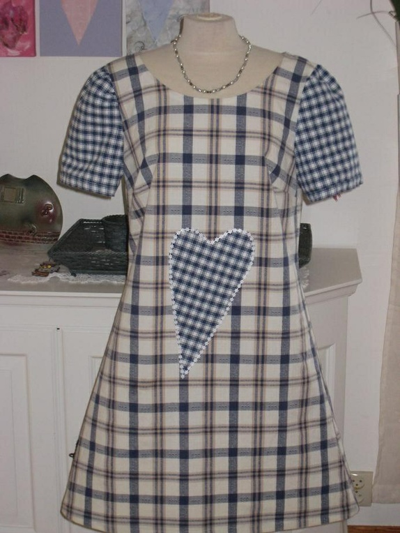 Hyggelig sommerkjole sydd i 100 % bomull.Glidelås i ryggen og applikasjon forran på kjolen.