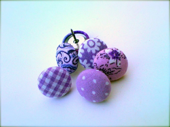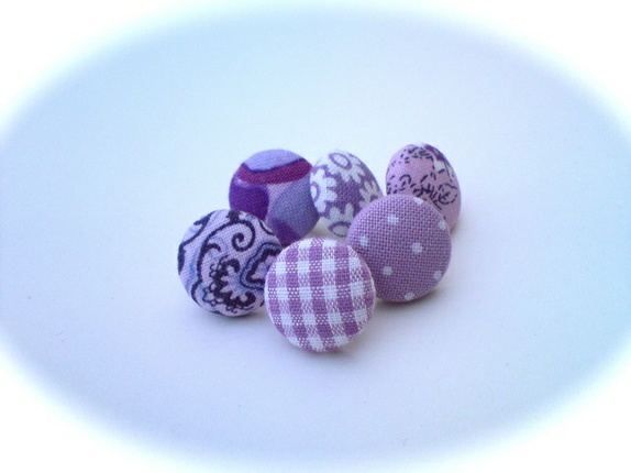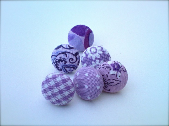 Trukket i stoff i ulike lilla mønster. Nålene er solide.