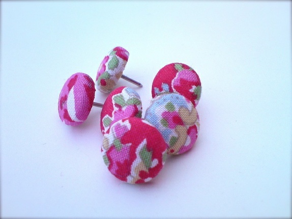 Trukket i stoff i rødt og rosa. Stoffet er fra Cath Kidston. Nålene er solide.