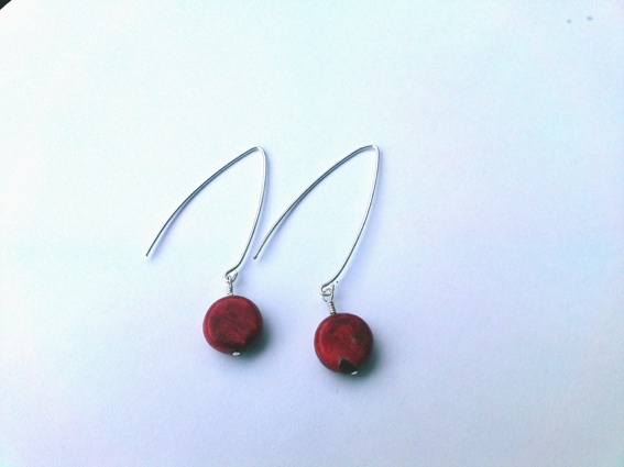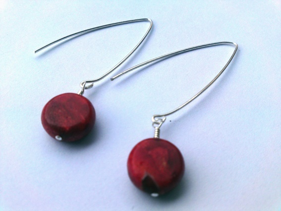 Flott ørepynt i 925 sterling sølv med flat og rundt korall fra sør-Italia, Amalfikysten. Enkel og hverdagslig, men passer også i andre sammenhenger.