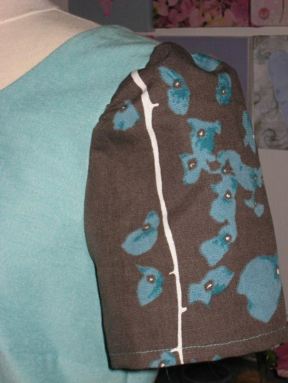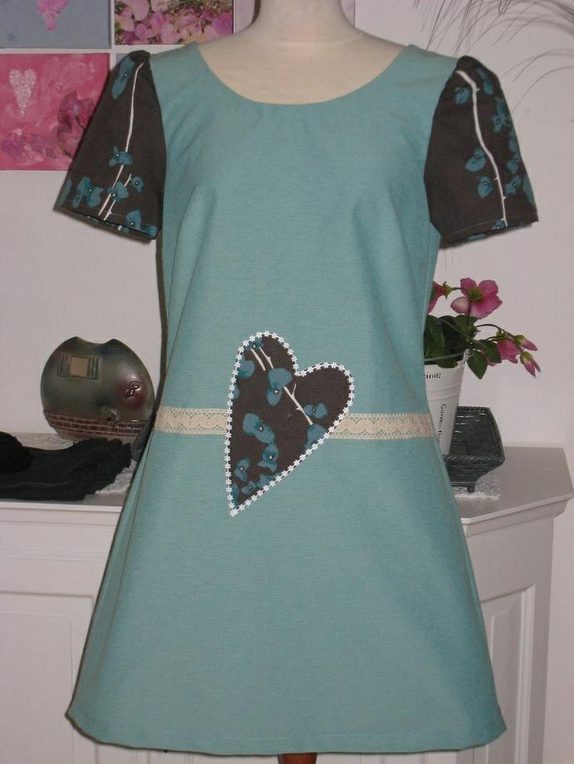 Enkel og pen sommer kjole sydd i 100 % bomull.Applikasjoner og glidelås i ryggen.