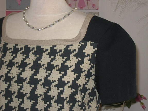 Kjole sydd i mørkeblått og beige. Den er i 100 % bomull og meget myk og behagelig.