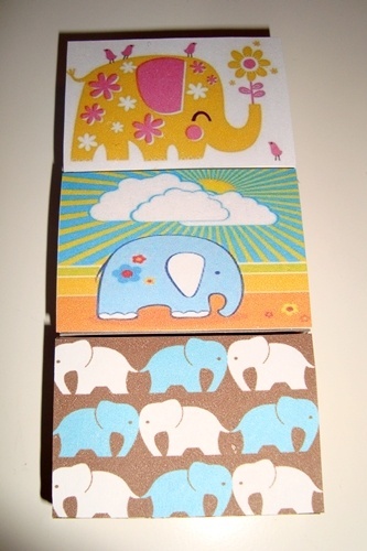 PRODUKTBESKRIVELSE: 3 stk. små fyrstikkesker med bilder av søte elefanter.