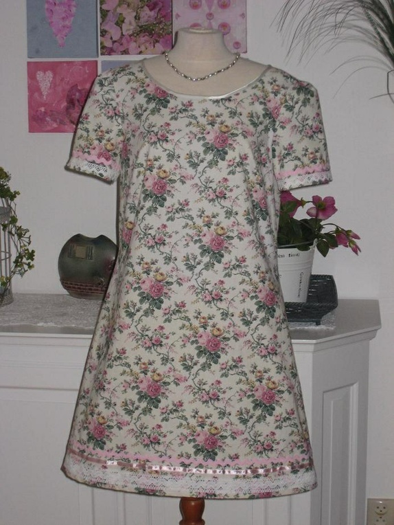 Søt kjole med rosemønster og bånd i 100 % bomull.