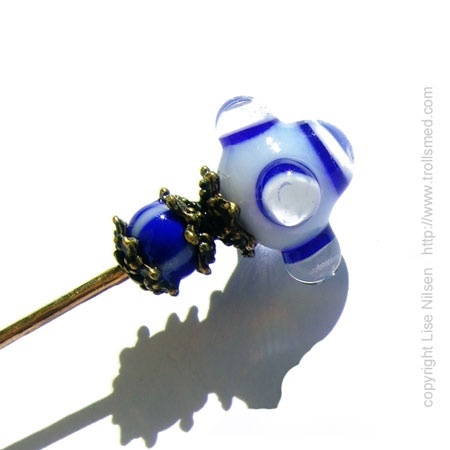 Lampwork på tykk bronsepinne, perlen er laget direkte på metallet som er etterbehandlet så det er så stivt som mulig så den ikke bøyer seg til en mjuk siksak ved første gangs bruk.....