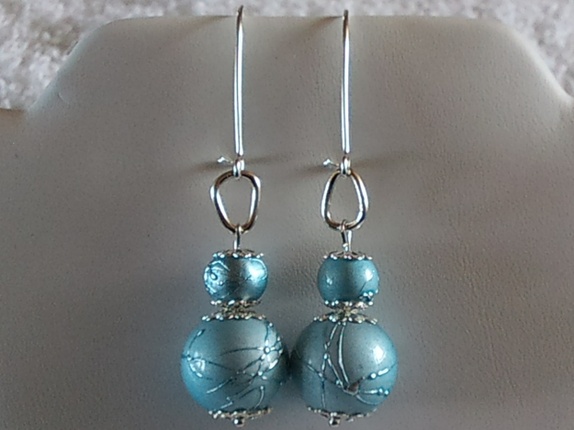 Ørekroker med lyseblå perler i to størrelser, artig skinnende effekt.