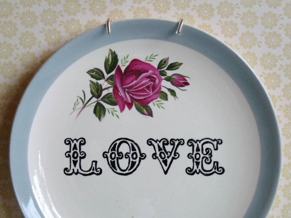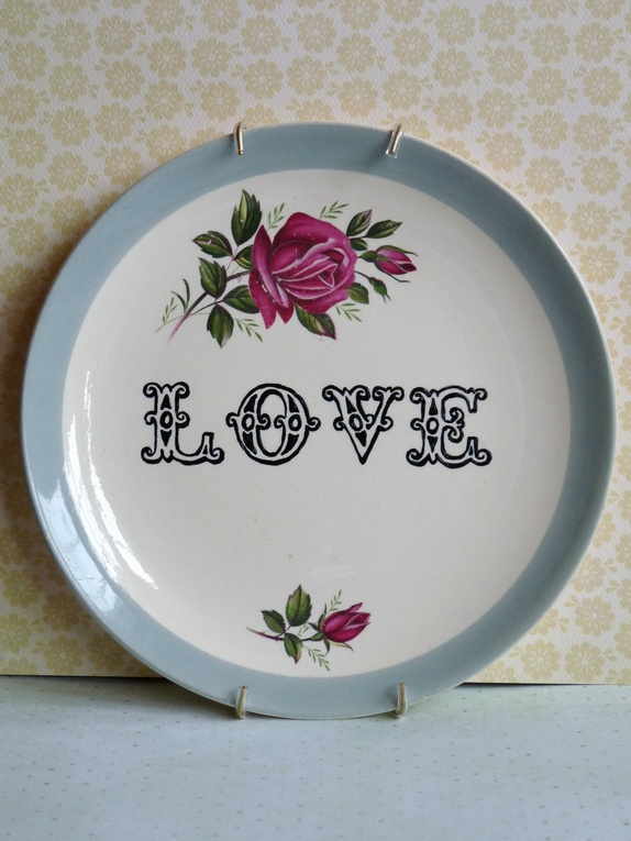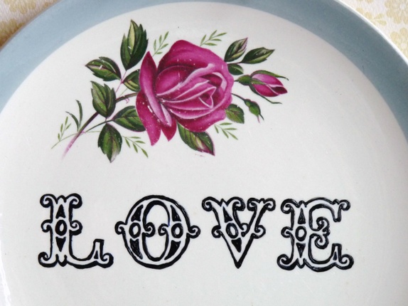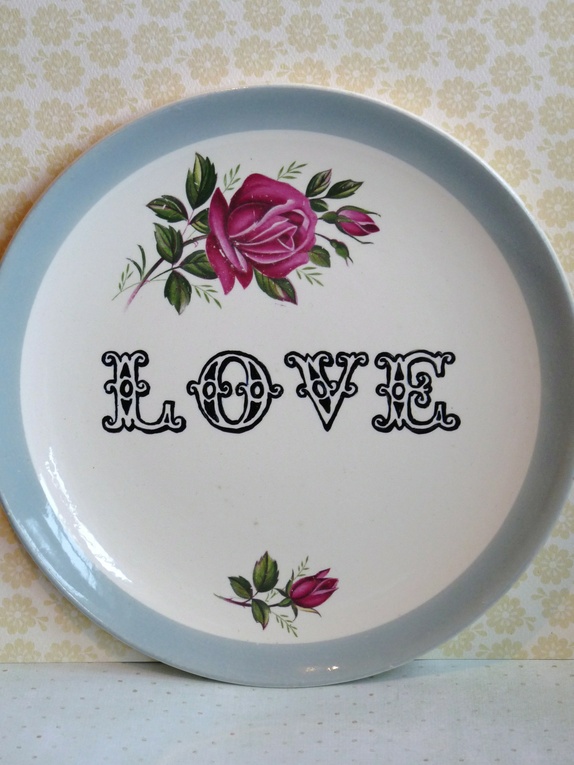 Teksten er malt for hånd med poselensmaling og brent i ovn så den skal tåle håndvask.