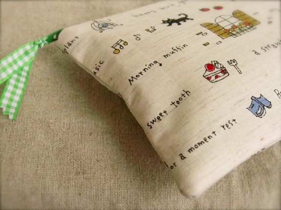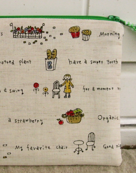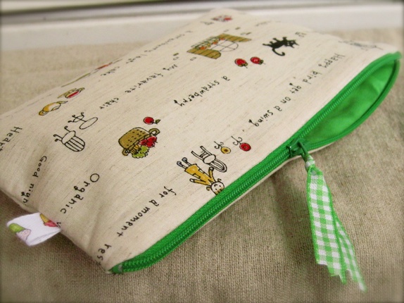 - En middels stor pung laget i japansk bomull. Foret med bomull i eplegrønt og med strykeinnlegg for stabilitet og styrke.