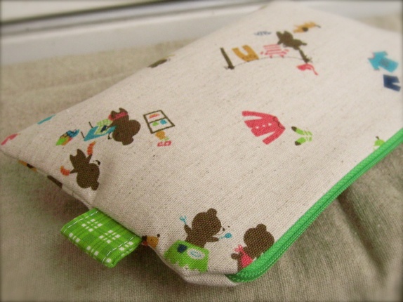 - En middels stor pung laget i japansk bomull. Foret med eplegrønn rutet bomull og med strykeinnlegg for stabilitet og styrke.