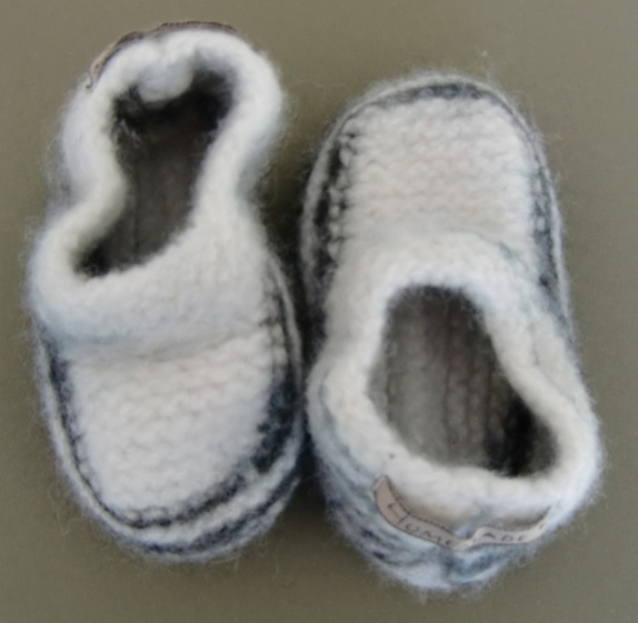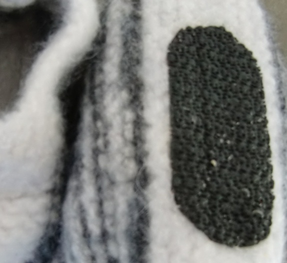 Tova tøfler i hvitt med grå striper.Tøflene har "såle" slik at de ikke er glatte.Utrolig gode og varme.Ca str 24-26