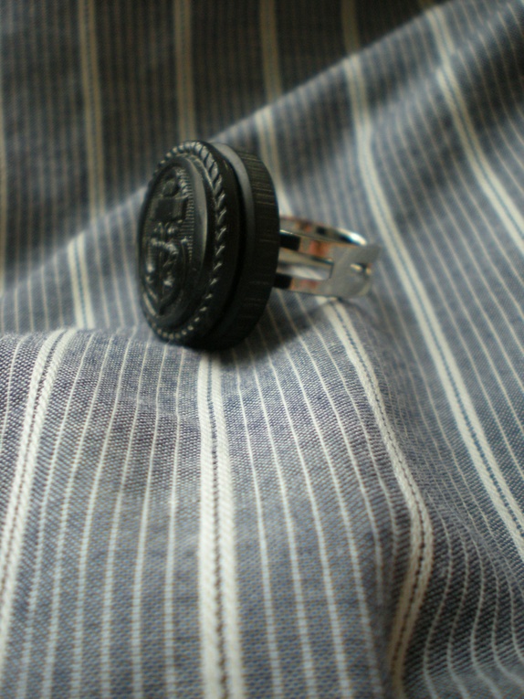 Ring i mørk marine-blå farge med maritimt anker motiv.