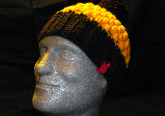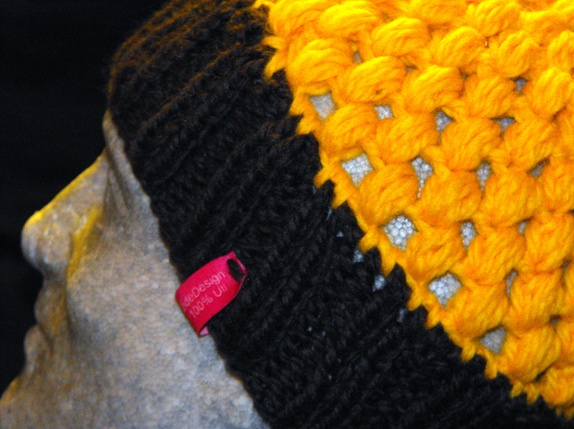 Hekla og strikka hue i to ulike fargar, laga i 100% ull. Eg lagar dei i dei fleste fargar, så berre ta kontakt, dersom du har spesielle ynskjer.