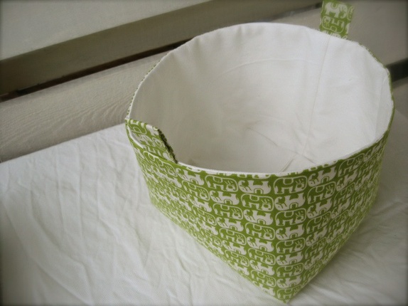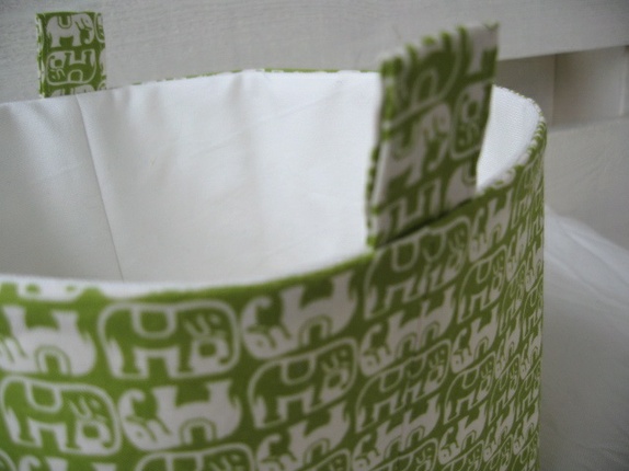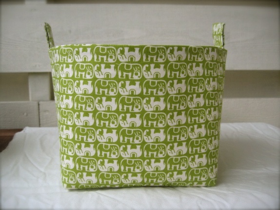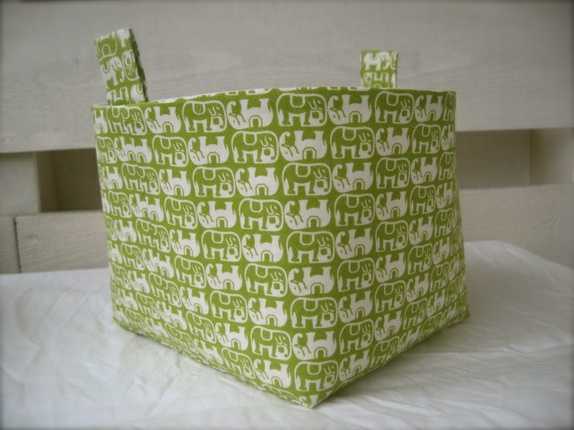 Hyggelig kurv i solid bomull - grønne og hvite elefanter.