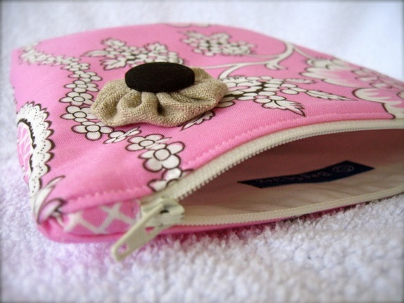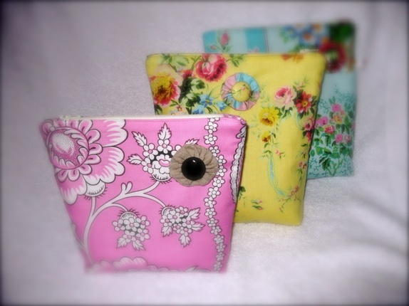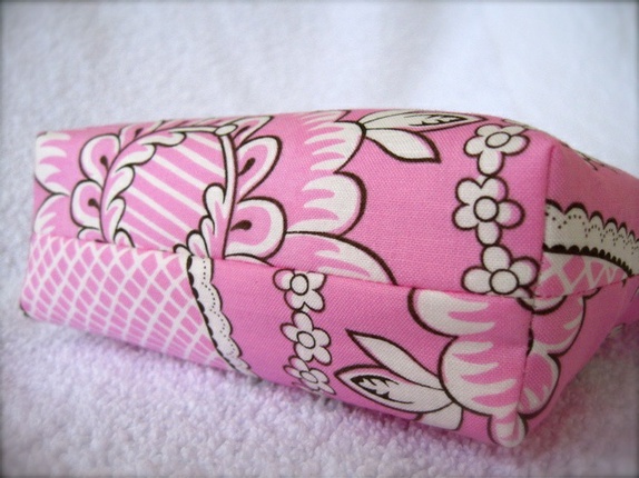 - En middels stor toalettmappe eller make-up bag laget i bomull. Foret med kremfarget bomull og med strykeinnlegg på begge lag for stabilitet og styrke.