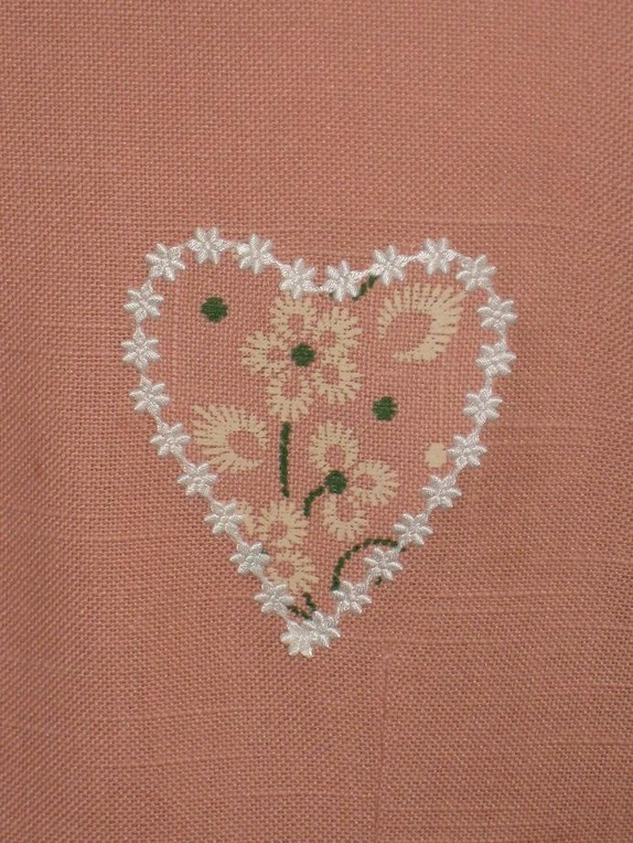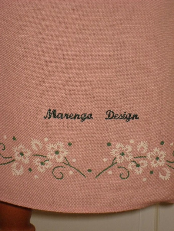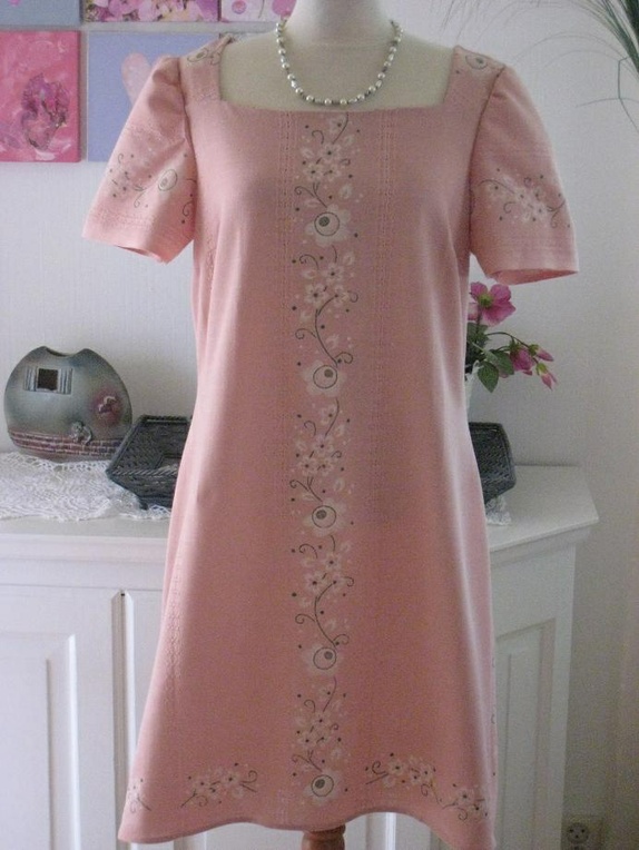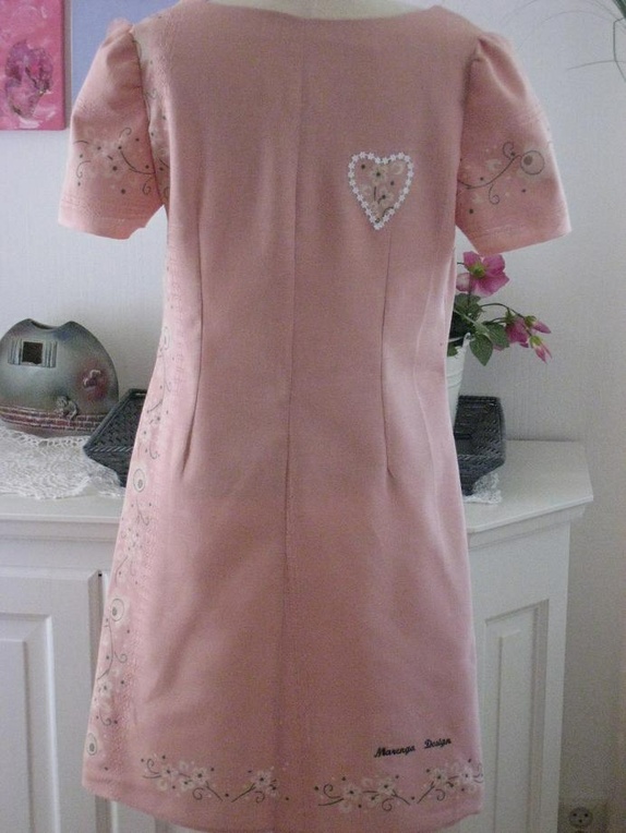 Lys rosa, myk og behagelig sommer kjole med applikering og brodert Marengo Design bak på kjolen.