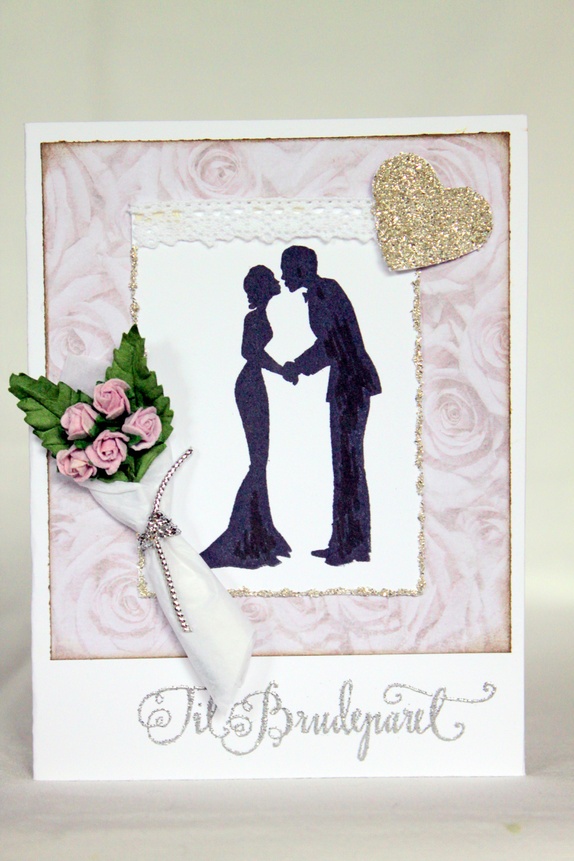 Fargene går i grålilla, sølv og hvitt og med et sort brudepar i silhuett som blikkfang.