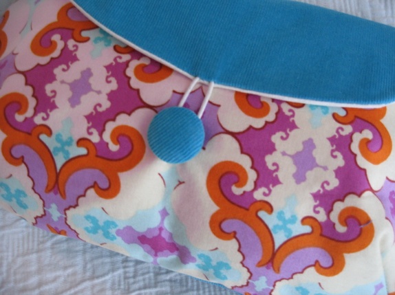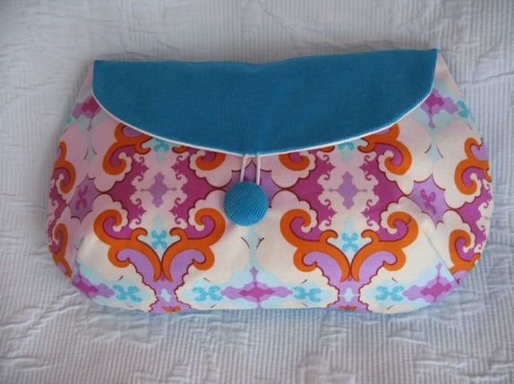 - En liten veske laget i fløyel og bomull. Foret med kremfarget bomull og med strykeinnlegg på alle lag for stabilitet og styrke.Lukkes med en trukket knapp