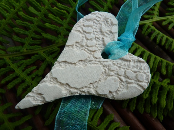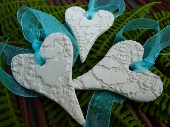 Nå har jeg laget keramikk hjerter i hvit leirgods.Det er bånd til hvert hjerte som kan knytes på pakken.Du kan også henge opp hjertene i vinduet om du har lyst til det.Målene på hjertene er 4,5 cm x 6 cm (bredde x høyde)