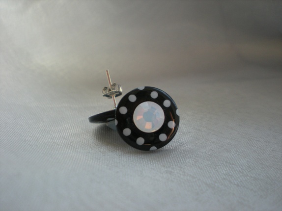Søte øredobber i sort og hvitt. Øredobbene er pyntet med hvite swarovski-stener.
