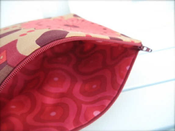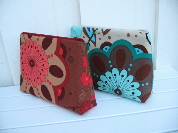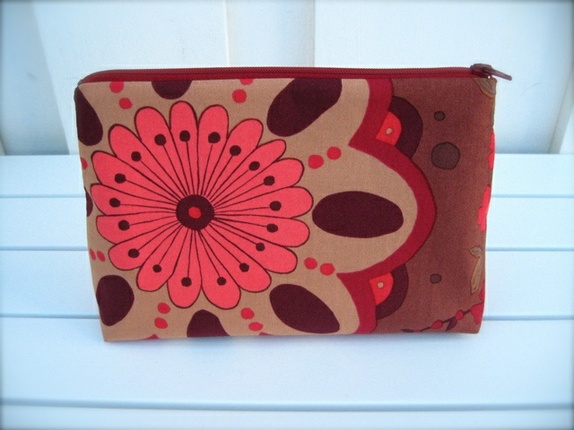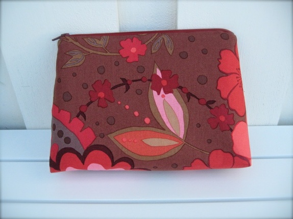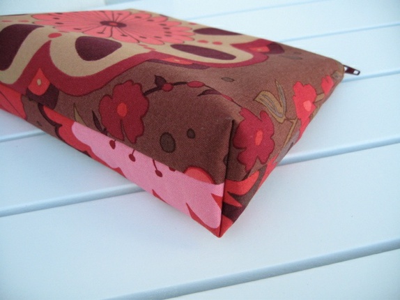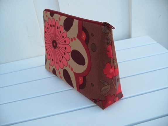 Enkel og elegant pung med plass til en del kosmetikk. I mettede farger i brunt og rødt.