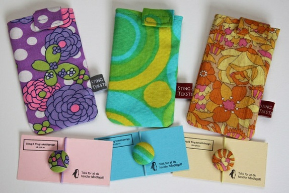 Etuiet er sydd i et stilig og fargesterkt bomullsstoff - rester fra et av mammas syprosjekter på 70-tallet.