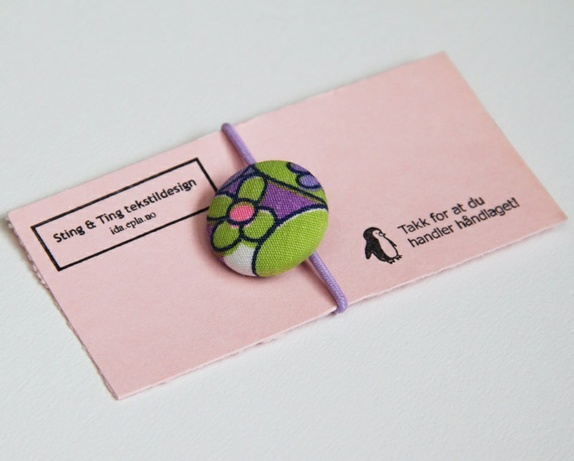 Selve strikken er lilla, og ca 4,5 cm i diameter.