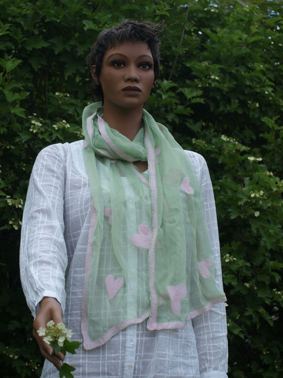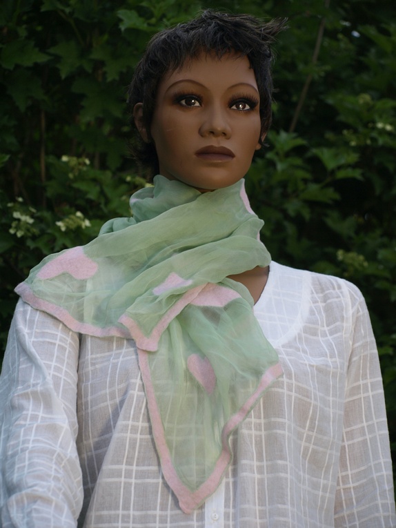 Skjerfet håndvaskes i Milovann og skylles i lunkent vann. Du kan klemme ut vann i et håndkle og henge det opp.
