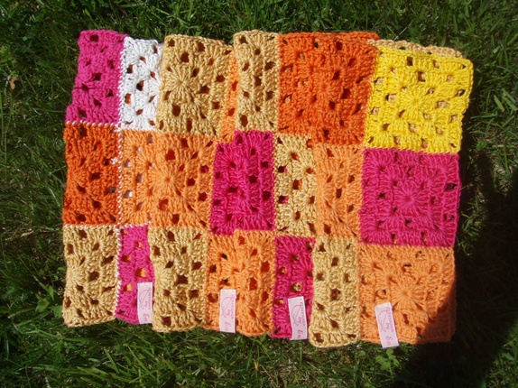 Heklede oppvaskluter i bomull,gul/orange/rosa.