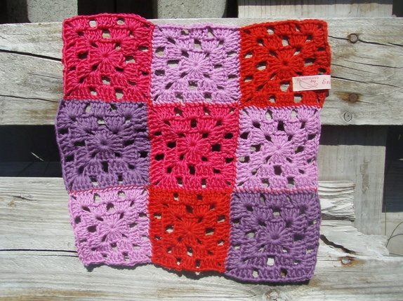 Heklede oppvaskluter i bomull,rosa/lilla/rød.
