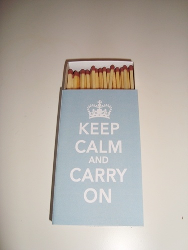"KEEP CALM AND CARRY ON" - Stor fyrstikkeske