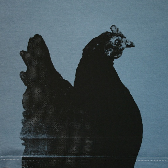 -Trykket er et hønefoto jeg har tatt som er overført med silketrykk.